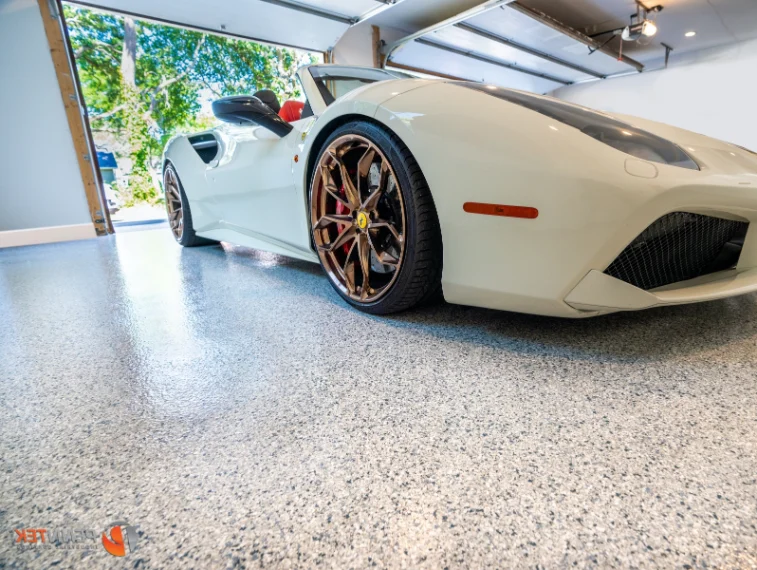 An epoxy garage floor gives a smooth finish that’s easy to clean and built for daily use. It resists hot tire marks, oil drips, and dropped tools without wearing down.